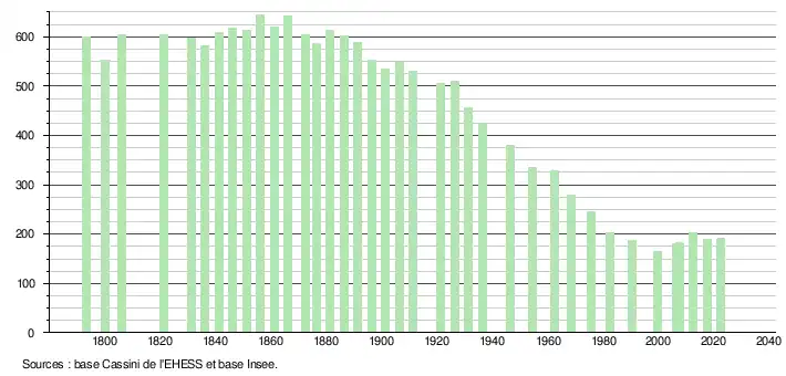 - ↑ Population municipale de référence en vigueur au 1er janvier 2025, millésimée 2022, définie dans les limites territoriales en vigueur au 1er janvier 2024, date de référence statistique : 1er janvier 2022.