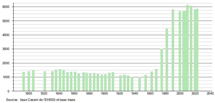 - ↑ Fiches Insee - Populations de référence de la commune pour les années 2006, 2007, 2008, 2009, 2010, 2011, 2012, 2013, 2014, 2015, 2016, 2017, 2018, 2019, 2020, 2021 et 2022.