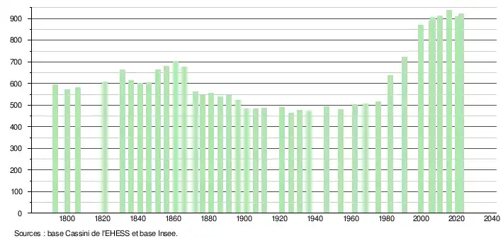 - ↑ Fiches Insee - Populations de référence de la commune pour les années 2006, 2007, 2008, 2009, 2010, 2011, 2012, 2013, 2014, 2015, 2016, 2017, 2018, 2019, 2020, 2021 et 2022.
