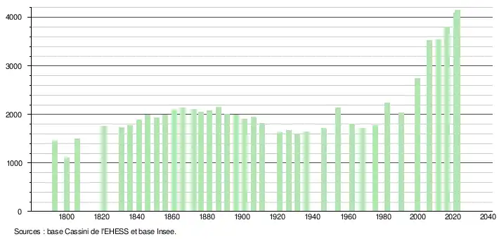 - ↑ Fiches Insee - Populations de référence de la commune pour les années 2006, 2007, 2008, 2009, 2010, 2011, 2012, 2013, 2014, 2015, 2016, 2017, 2018, 2019, 2020, 2021 et 2022.
