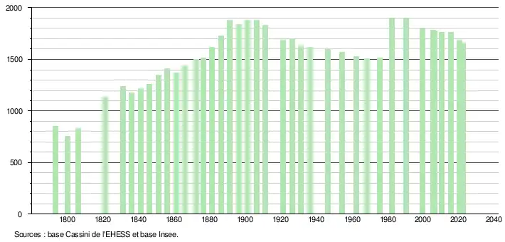 - ↑ Fiches Insee - Populations de référence de la commune pour les années 2006, 2007, 2008, 2009, 2010, 2011, 2012, 2013, 2014, 2015, 2016, 2017, 2018, 2019, 2020, 2021 et 2022.