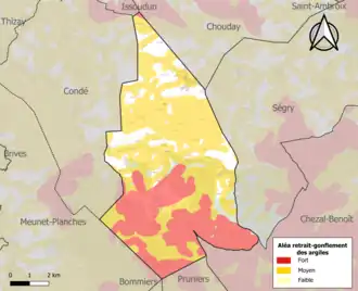 Le retrait-gonflement des sols argileux est susceptible d'engendrer des dommages importants aux bâtiments en cas d’alternance de périodes de sécheresse et de pluie. 83,8 % de la superficie communale est en aléa moyen ou fort (84,7 % au niveau départemental et 48,5 % au niveau national). Sur les 106 bâtiments dénombrés sur la commune en 2019, 98 sont en aléa moyen ou fort, soit 92 %, à comparer aux 86 % au niveau départemental et 54 % au niveau national. Une cartographie de l'exposition du territoire national au retrait gonflement des sols argileux est disponible sur le site du BRGM[22],[23].