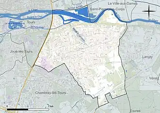 Les communes limitrophes sont Chambray-lès-Tours, Larçay, Saint-Pierre-des-Corps et Tours.