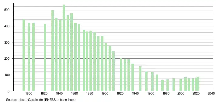 - ↑ Population municipale de référence en vigueur au 1er janvier 2025, millésimée 2022, définie dans les limites territoriales en vigueur au 1er janvier 2024, date de référence statistique : 1er janvier 2022.