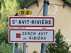 - ↑ Le nom occitan des communes du Périgord - Sench Avit de Ribièra sur le site du Conseil général de la Dordogne, consulté le .