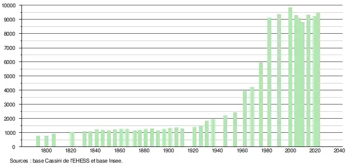 - ↑ Population municipale de référence en vigueur au 1er janvier 2025, millésimée 2022, définie dans les limites territoriales en vigueur au 1er janvier 2024, date de référence statistique : 1er janvier 2022.
