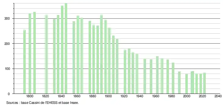 - ↑ Fiches Insee - Populations de référence de la commune pour les années 2006, 2007, 2008, 2009, 2010, 2011, 2012, 2013, 2014, 2015, 2016, 2017, 2018, 2019, 2020, 2021 et 2022.