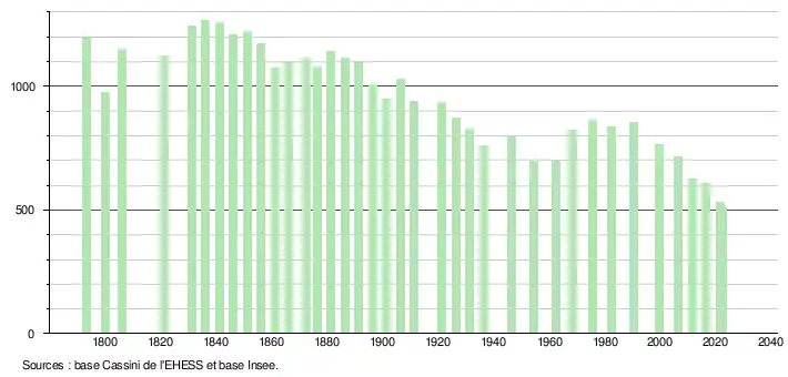 - ↑ Fiches Insee - Populations de référence de la commune pour les années 2006, 2007, 2008, 2009, 2010, 2011, 2012, 2013, 2014, 2015, 2016, 2017, 2018, 2019, 2020, 2021 et 2022.