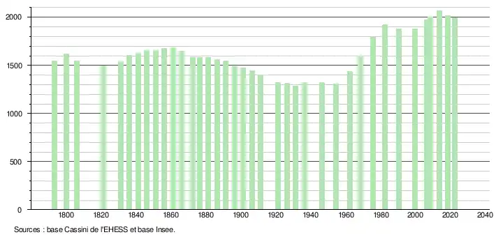 - ↑ Fiches Insee - Populations de référence de la commune pour les années 2006, 2007, 2008, 2009, 2010, 2011, 2012, 2013, 2014, 2015, 2016, 2017, 2018, 2019, 2020, 2021 et 2022.