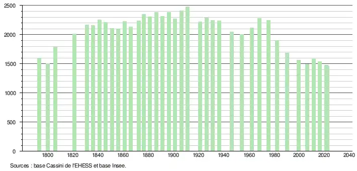 - ↑ Fiches Insee - Populations de référence de la commune pour les années 2006, 2007, 2008, 2009, 2010, 2011, 2012, 2013, 2014, 2015, 2016, 2017, 2018, 2019, 2020, 2021 et 2022.