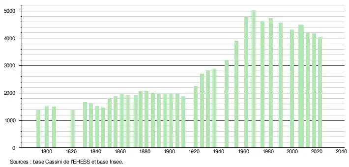 - ↑ Population municipale de référence en vigueur au 1er janvier 2025, millésimée 2022, définie dans les limites territoriales en vigueur au 1er janvier 2024, date de référence statistique : 1er janvier 2022.