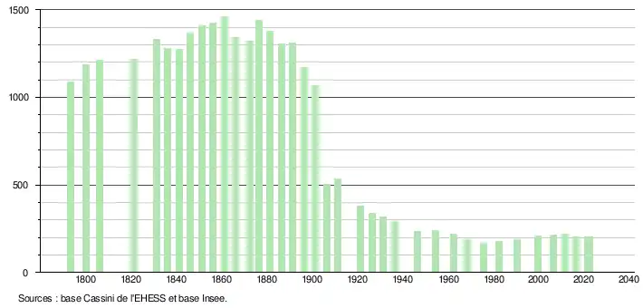 - ↑ Fiches Insee - Populations de référence de la commune pour les années 2006, 2007, 2008, 2009, 2010, 2011, 2012, 2013, 2014, 2015, 2016, 2017, 2018, 2019, 2020, 2021 et 2022.