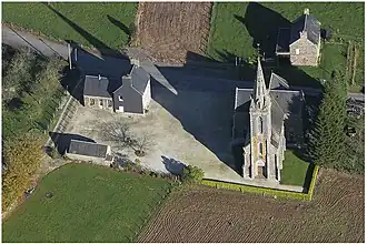 - Le monument aux morts, en contrebas de cette église, construit avec les pierres de la chapelle précédente, sur le lieu de celle-ci, et où se tiennent les pèlerinages.