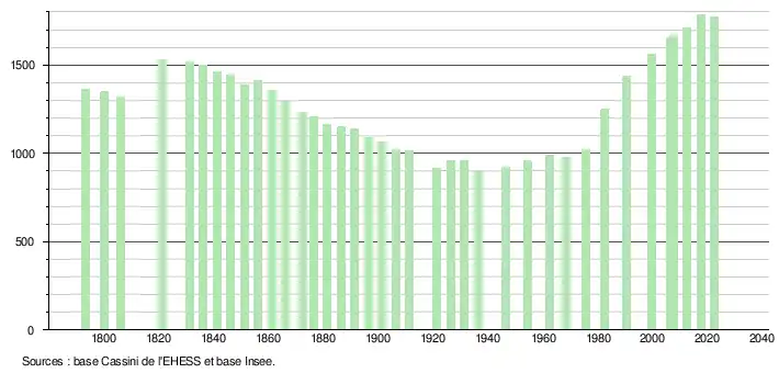 - ↑ Fiches Insee - Populations de référence de la commune pour les années 2006, 2007, 2008, 2009, 2010, 2011, 2012, 2013, 2014, 2015, 2016, 2017, 2018, 2019, 2020, 2021 et 2022.