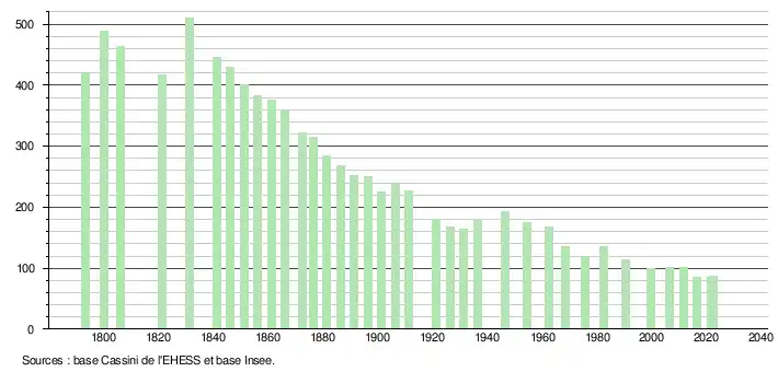 - ↑ Population municipale de référence en vigueur au 1er janvier 2025, millésimée 2022, définie dans les limites territoriales en vigueur au 1er janvier 2024, date de référence statistique : 1er janvier 2022.