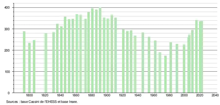 - ↑ Fiches Insee - Populations de référence de la commune pour les années 2006, 2007, 2008, 2009, 2010, 2011, 2012, 2013, 2014, 2015, 2016, 2017, 2018, 2019, 2020, 2021 et 2022.