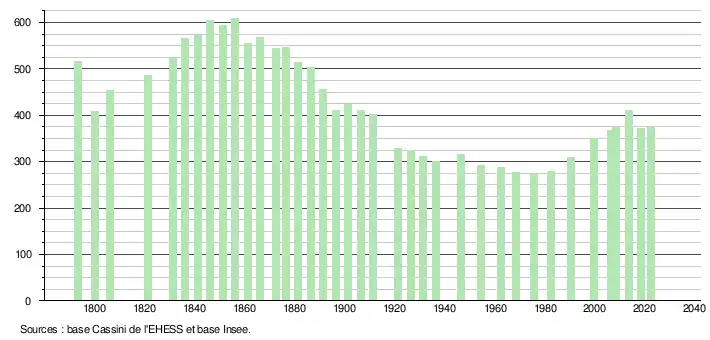 - ↑ Population municipale de référence en vigueur au 1er janvier 2025, millésimée 2022, définie dans les limites territoriales en vigueur au 1er janvier 2024, date de référence statistique : 1er janvier 2022.