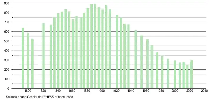 - ↑ Fiches Insee - Populations de référence de la commune pour les années 2006, 2007, 2008, 2009, 2010, 2011, 2012, 2013, 2014, 2015, 2016, 2017, 2018, 2019, 2020, 2021 et 2022.