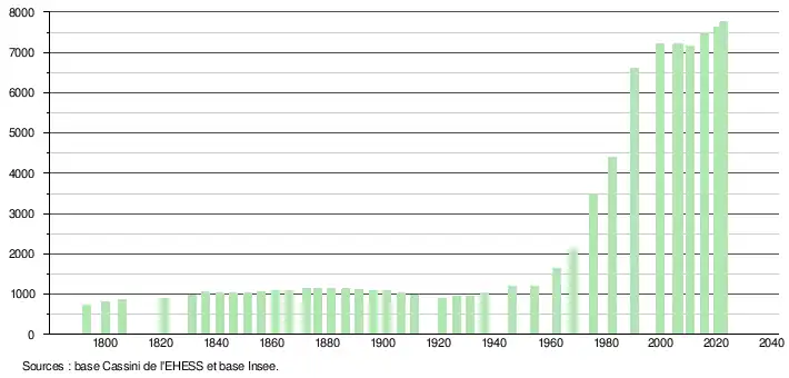 - ↑ Fiches Insee - Populations de référence de la commune pour les années 2006, 2007, 2008, 2009, 2010, 2011, 2012, 2013, 2014, 2015, 2016, 2017, 2018, 2019, 2020, 2021 et 2022.
