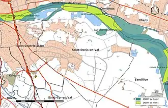 L'inventaire des zones naturelles d'intérêt écologique, faunistique et floristique (ZNIEFF) a pour objectif de réaliser une couverture des zones les plus intéressantes sur le plan écologique, essentiellement dans la perspective d'améliorer la connaissance du patrimoine naturel national et de fournir aux différents décideurs un outil d’aide à la prise en compte de l’environnement dans l’aménagement du territoire. Le territoire communal de Saint-Denis-en-Val comprend deux ZNIEFF[INPN 4].