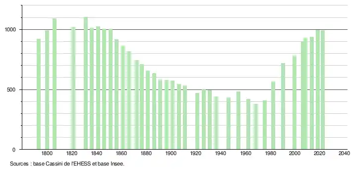 - ↑ Fiches Insee - Populations de référence de la commune pour les années 2006, 2007, 2008, 2009, 2010, 2011, 2012, 2013, 2014, 2015, 2016, 2017, 2018, 2019, 2020, 2021 et 2022.