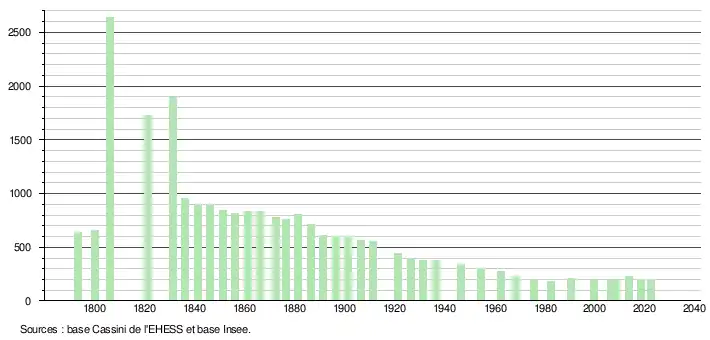 - ↑ Fiches Insee - Populations de référence de la commune pour les années 2006, 2007, 2008, 2009, 2010, 2011, 2012, 2013, 2014, 2015, 2016, 2017, 2018, 2019, 2020, 2021 et 2022.