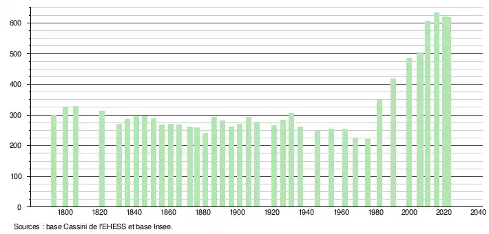 - ↑ Population municipale de référence en vigueur au 1er janvier 2025, millésimée 2022, définie dans les limites territoriales en vigueur au 1er janvier 2024, date de référence statistique : 1er janvier 2022.