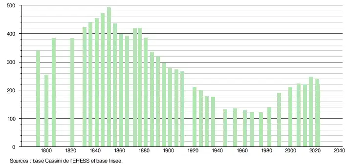 - ↑ Fiches Insee - Populations de référence de la commune pour les années 2006, 2007, 2008, 2009, 2010, 2011, 2012, 2013, 2014, 2015, 2016, 2017, 2018, 2019, 2020, 2021 et 2022.