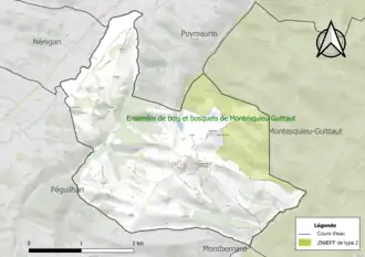 Une ZNIEFF de type 2[Note 2] est recensée sur la commune[17] : l'« ensemble de bois et bosquets de Montesquieu-Guittaut » (1 596 ha), couvrant 7 communes du département[18].