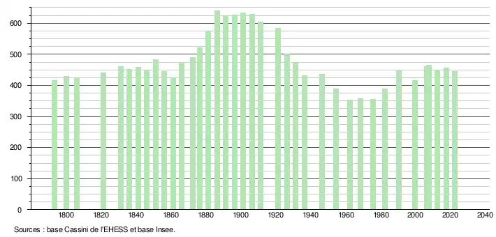 - ↑ Fiches Insee - Populations de référence de la commune pour les années 2006, 2007, 2008, 2009, 2010, 2011, 2012, 2013, 2014, 2015, 2016, 2017, 2018, 2019, 2020, 2021 et 2022.