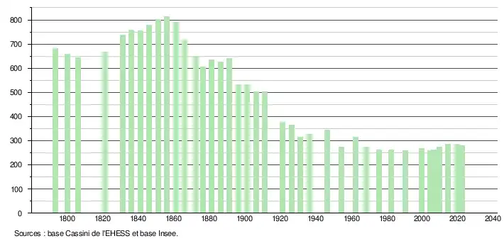 - ↑ Fiches Insee - Populations de référence de la commune pour les années 2006, 2007, 2008, 2009, 2010, 2011, 2012, 2013, 2014, 2015, 2016, 2017, 2018, 2019, 2020, 2021 et 2022.