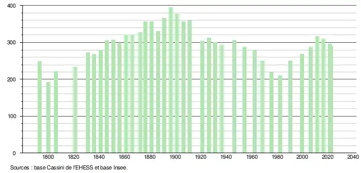 - ↑ Fiches Insee - Populations de référence de la commune pour les années 2006, 2007, 2008, 2009, 2010, 2011, 2012, 2013, 2014, 2015, 2016, 2017, 2018, 2019, 2020, 2021 et 2022.