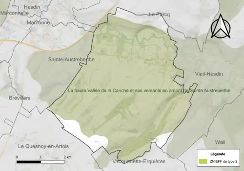 - ↑ « ZNIEFF 310007267 - La haute vallée de la Canche et ses versants en amont de Sainte-Austreberthe », sur le site de l'Inventaire national du patrimoine naturel (consulté le ).