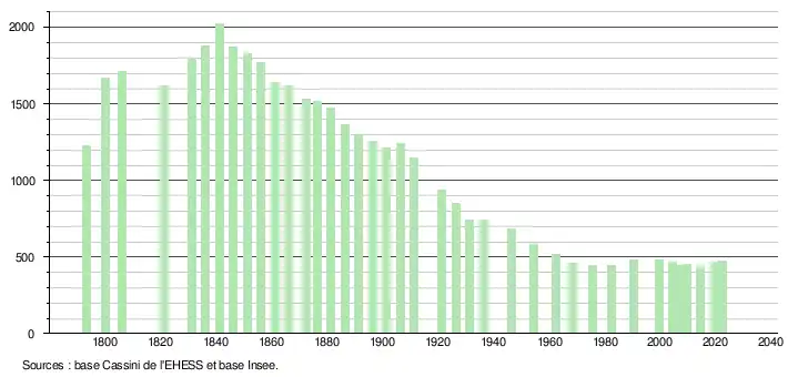 - ↑ Fiches Insee - Populations de référence de la commune pour les années 2006, 2007, 2008, 2009, 2010, 2011, 2012, 2013, 2014, 2015, 2016, 2017, 2018, 2019, 2020, 2021 et 2022.
