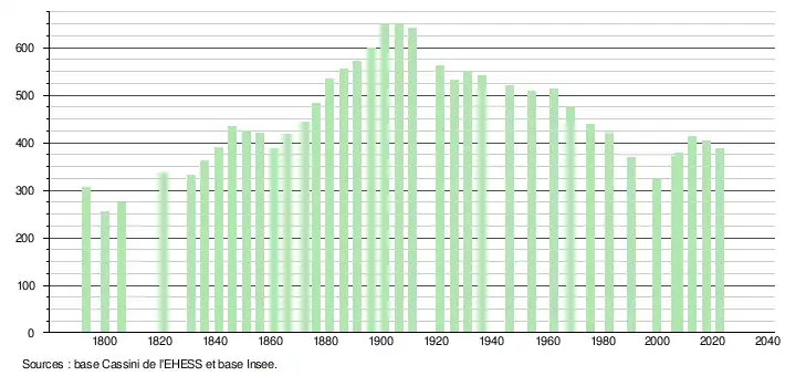 - ↑ Fiches Insee - Populations de référence de la commune pour les années 2006, 2007, 2008, 2009, 2010, 2011, 2012, 2013, 2014, 2015, 2016, 2017, 2018, 2019, 2020, 2021 et 2022.