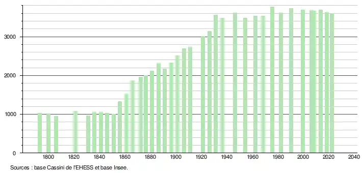 - ↑ Fiches Insee - Populations de référence de la commune pour les années 2006, 2007, 2008, 2009, 2010, 2011, 2012, 2013, 2014, 2015, 2016, 2017, 2018, 2019, 2020, 2021 et 2022.