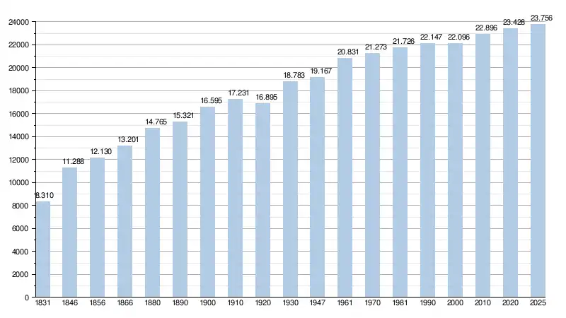 - Source: DGS , de 1831 à 1981=recensements population; à partir de 1990 = nombre d'habitants chaque 1 janvier