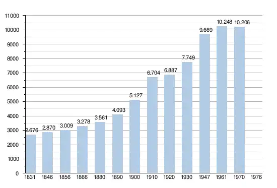 - Sources : INS, Rem. : 1831 jusqu'en 1970 = recensements, 1976 = nombre d'habitants au 31 décembre[2].