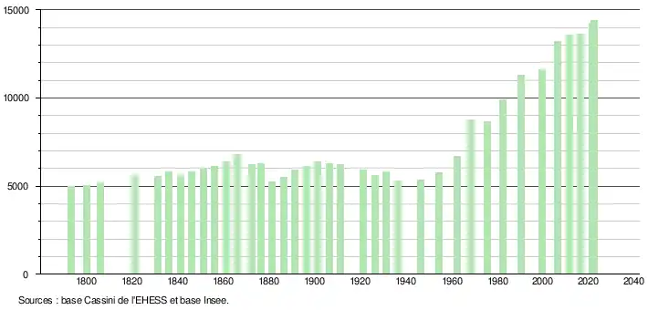 14 427 hab. (2022 en évolution de +5,96 % par rapport à 2016)