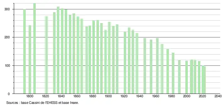 - ↑ Fiches Insee - Populations de référence de la commune pour les années 2006, 2007, 2008, 2009, 2010, 2011, 2012, 2013, 2014, 2015, 2016, 2017, 2018, 2019, 2020, 2021 et 2022.