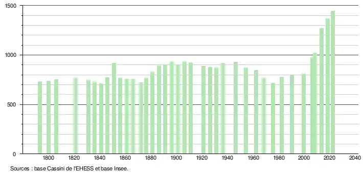 - ↑ Population municipale de référence en vigueur au 1er janvier 2025, millésimée 2022, définie dans les limites territoriales en vigueur au 1er janvier 2024, date de référence statistique : 1er janvier 2022.