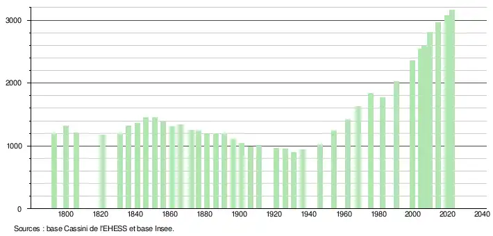 - ↑ Fiches Insee - Populations de référence de la commune pour les années 2006, 2007, 2008, 2009, 2010, 2011, 2012, 2013, 2014, 2015, 2016, 2017, 2018, 2019, 2020, 2021 et 2022.