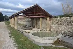 - Le lavoir à deux bassins cylindriques avec un lavoir central, alimenté par une fontaine en forme de mausolée qui recueille les eaux de plusieurs sources.