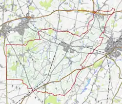 L'occupation des sols de la commune, telle qu'elle ressort de la base de données européenne d’occupation biophysique des sols Corine Land Cover (CLC), est marquée par l'importance des territoires agricoles (93,7 % en 2018), en diminution par rapport à 1990 (97,2 %). La répartition détaillée en 2018 est la suivante : zones agricoles hétérogènes (39,7 %), terres arables (29,5 %), prairies (24,5 %), zones urbanisées (3,5 %), zones industrielles ou commerciales et réseaux de communication (1,5 %), forêts (1 %), mines, décharges et chantiers (0,2 %)[12]. L'évolution de l’occupation des sols de la commune et de ses infrastructures peut être observée sur les différentes représentations cartographiques du territoire : la carte de Cassini (XVIIIe siècle), la carte d'état-major (1820-1866) et les cartes ou photos aériennes de l'IGN pour la période actuelle (1950 à aujourd'hui)[Carte 1].