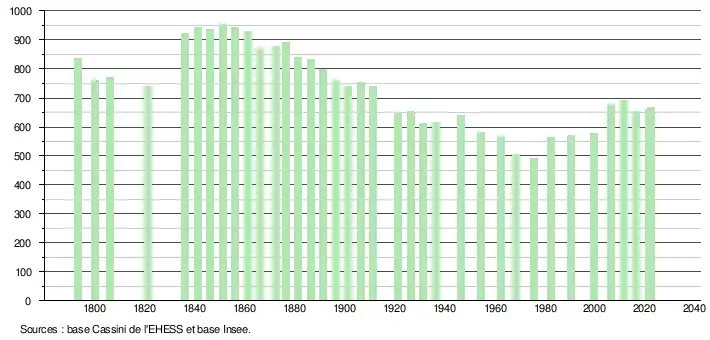 - ↑ Population municipale de référence en vigueur au 1er janvier 2025, millésimée 2022, définie dans les limites territoriales en vigueur au 1er janvier 2024, date de référence statistique : 1er janvier 2022.