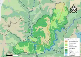 L'occupation des sols de la commune, telle qu'elle ressort de la base de données européenne d’occupation biophysique des sols Corine Land Cover (CLC), est marquée par l'importance des forêts et milieux semi-naturels (57,3 % en 2018), en diminution par rapport à 1990 (62,7 %). La répartition détaillée en 2018 est la suivante : forêts (57,2 %), prairies (21,4 %), zones agricoles hétérogènes (19 %), eaux continentales (2,3 %)[26].
