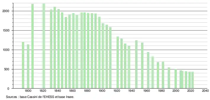 - ↑ Fiches Insee - Populations de référence de la commune pour les années 2006, 2007, 2008, 2009, 2010, 2011, 2012, 2013, 2014, 2015, 2016, 2017, 2018, 2019, 2020, 2021 et 2022.