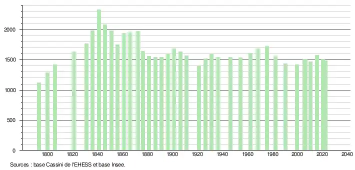 - ↑ Fiches Insee - Populations de référence de la commune pour les années 2006, 2007, 2008, 2009, 2010, 2011, 2012, 2013, 2014, 2015, 2016, 2017, 2018, 2019, 2020, 2021 et 2022.