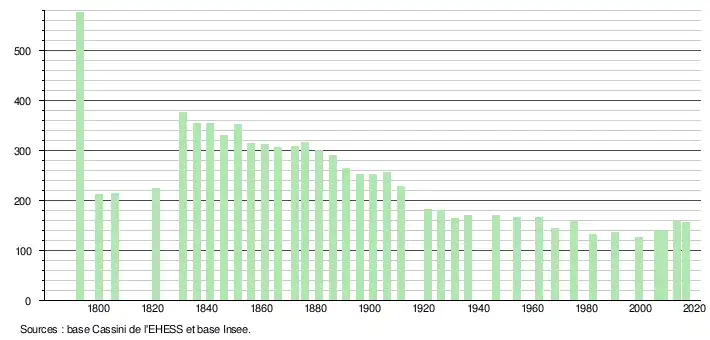 (Sources : Ldh/EHESS/Cassini jusqu'en 1999[4] puis Insee à partir de 2006[5].)