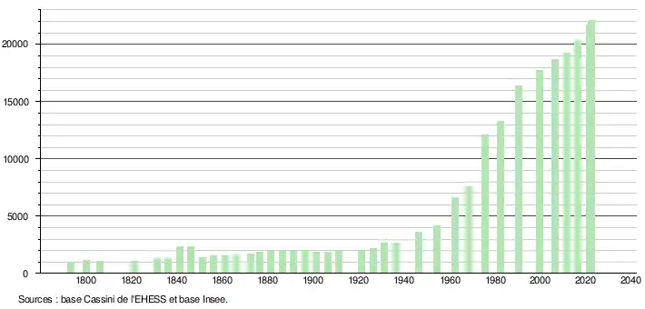 - ↑ Fiches Insee - Populations de référence de la commune pour les années 2006, 2007, 2008, 2009, 2010, 2011, 2012, 2013, 2014, 2015, 2016, 2017, 2018, 2019, 2020, 2021 et 2022.